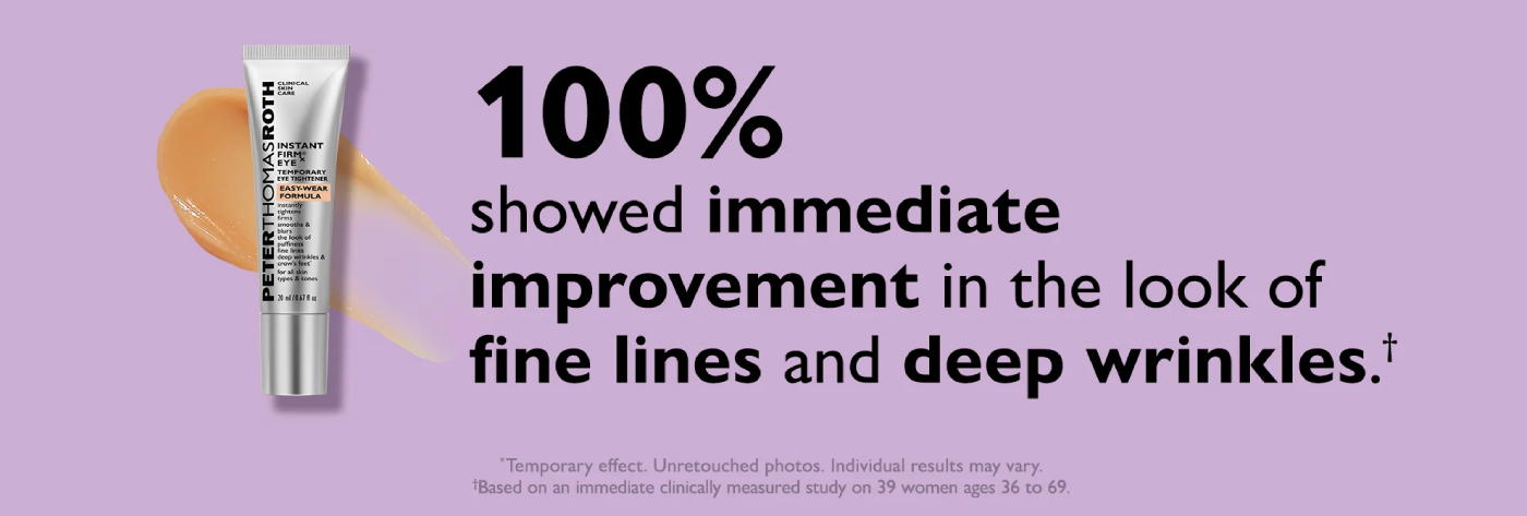 Clinically proven to immediately reduce the look of under-eye puffiness, fine lines, deep wrinkles and crow's feet for a temporary effect that can last all day! Easy to apply and comfortable to wear, this scientifically advanced eye tightener blends onto all skin types and tones and won’t pill under makeup.
